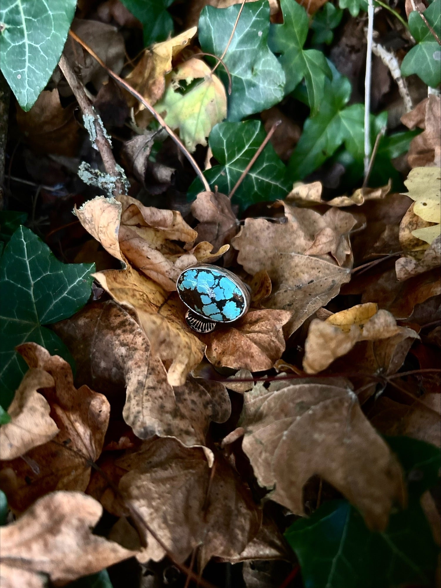 Superbe turquoise Qingu montée sur un anneau réglable de la taille 53 à 56.