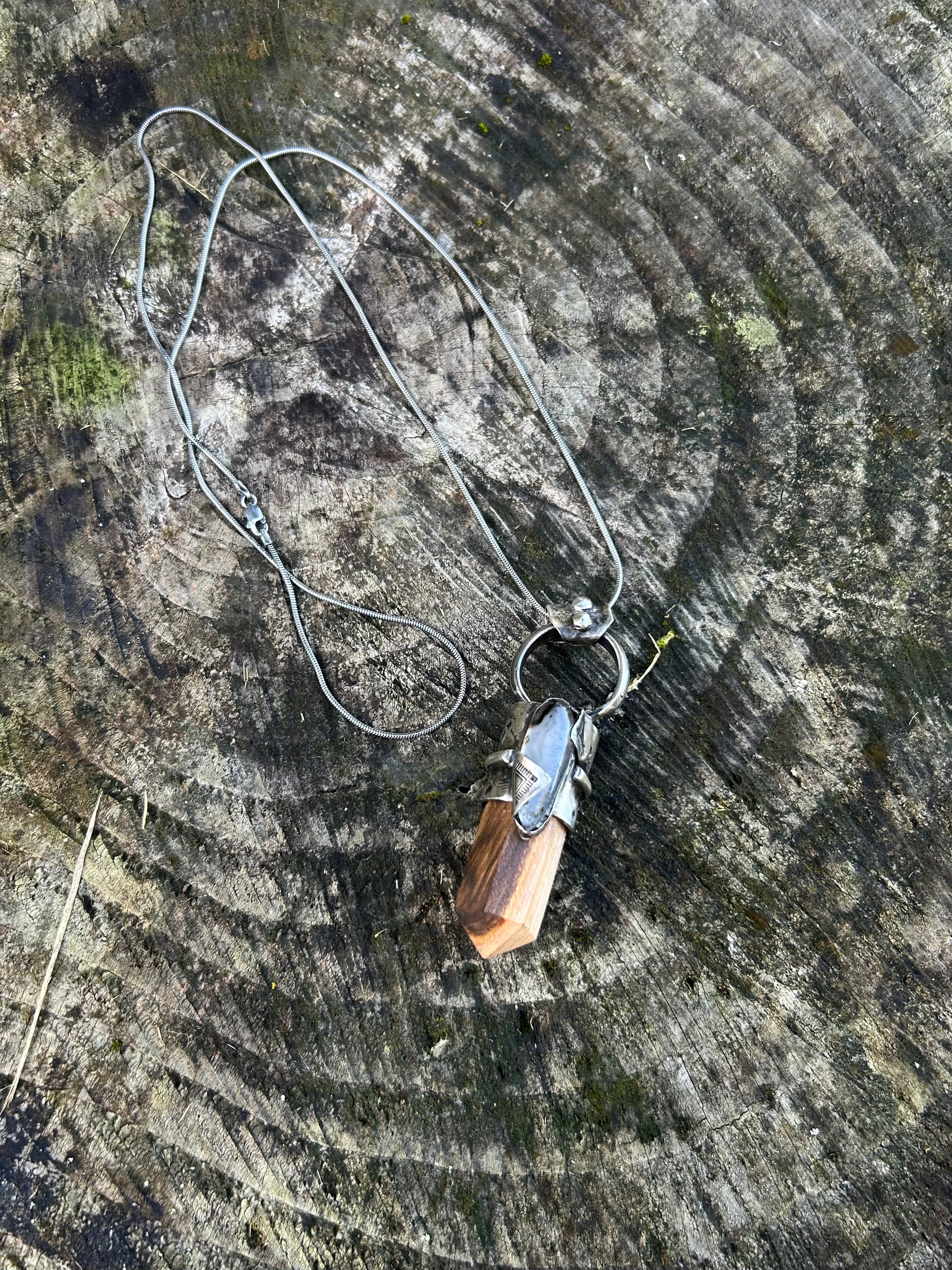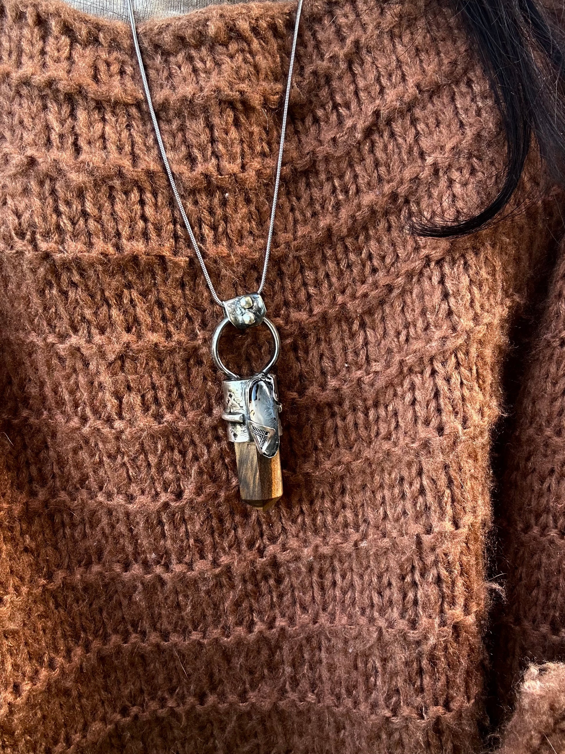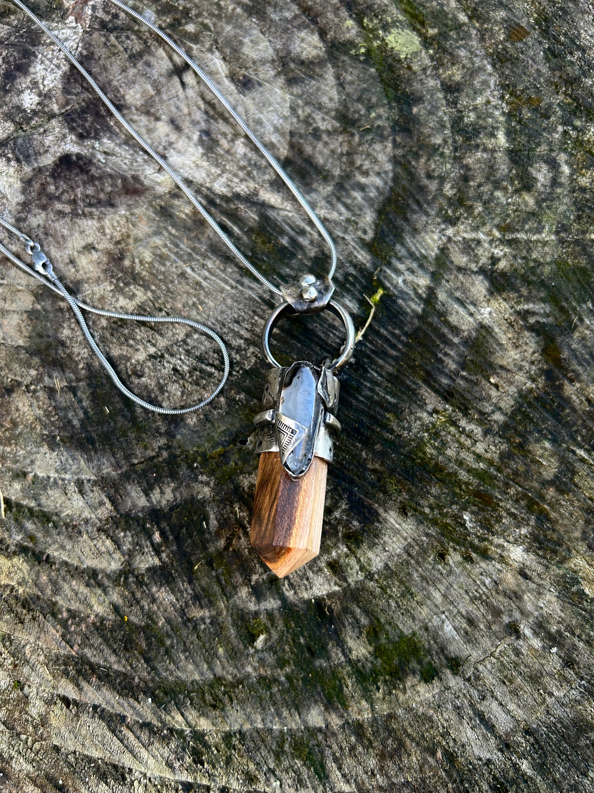 Magnifique talisman en bois de pistachier et agate du Montana.